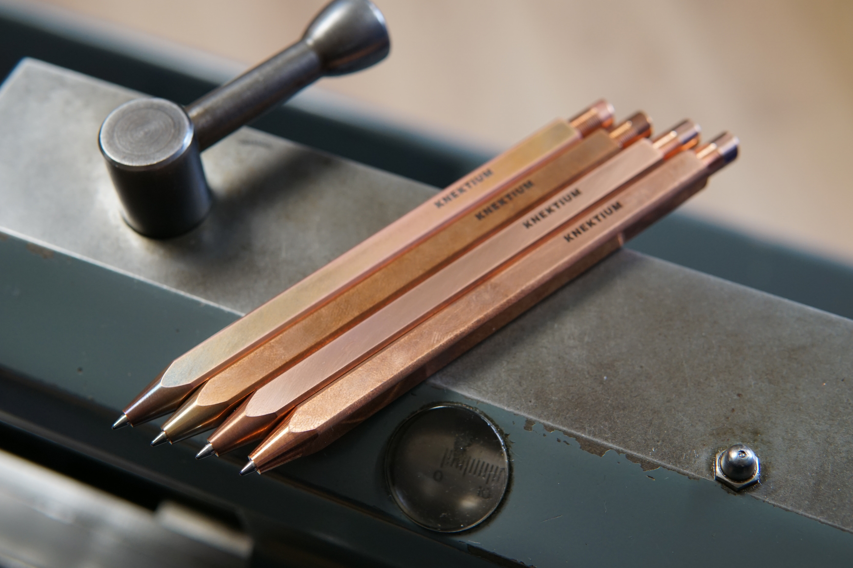 Knektium C2 är ett enkelt men vackert skrivinstrument där design och material står i fokus. Kroppen, som är helt integrerad med spetsen, är tillverkad ur en enda bit 99,95% ren koppar. Glansen från den lätt borstade ytan skapar en perfekt balans med mönstret från de finmetriska gängorna och den lasergraverade logotypen.